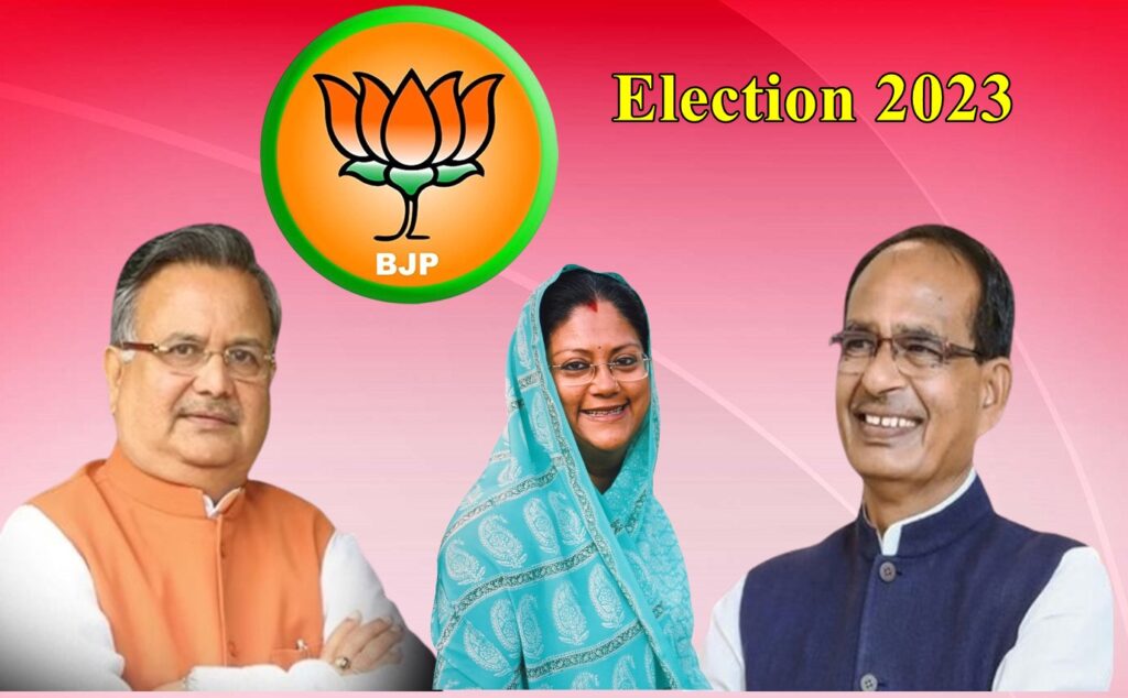 मुख्यमंत्री की दौड़ में नहीं है कोई नामी चेहरा, बाहर से नये नेता को बुलाकर भी बनाया जा सकता है मुख्यमंत्री। वसुंधरा, रमन और शिवराज सीएम की दौड़ से बाहर।