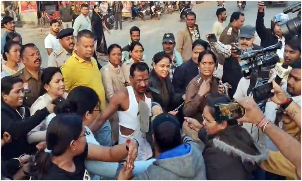तमनार हिंसा : महिला आरक्षक के कपड़े फाड़ने वाला मुख्य आरोपी चित्रसेन साव गिरफ्त में, पोती कालिख, जूते-चप्पलों की माला पहनाई, हेमू कालानी चौक पर फोड़े फटाखे।