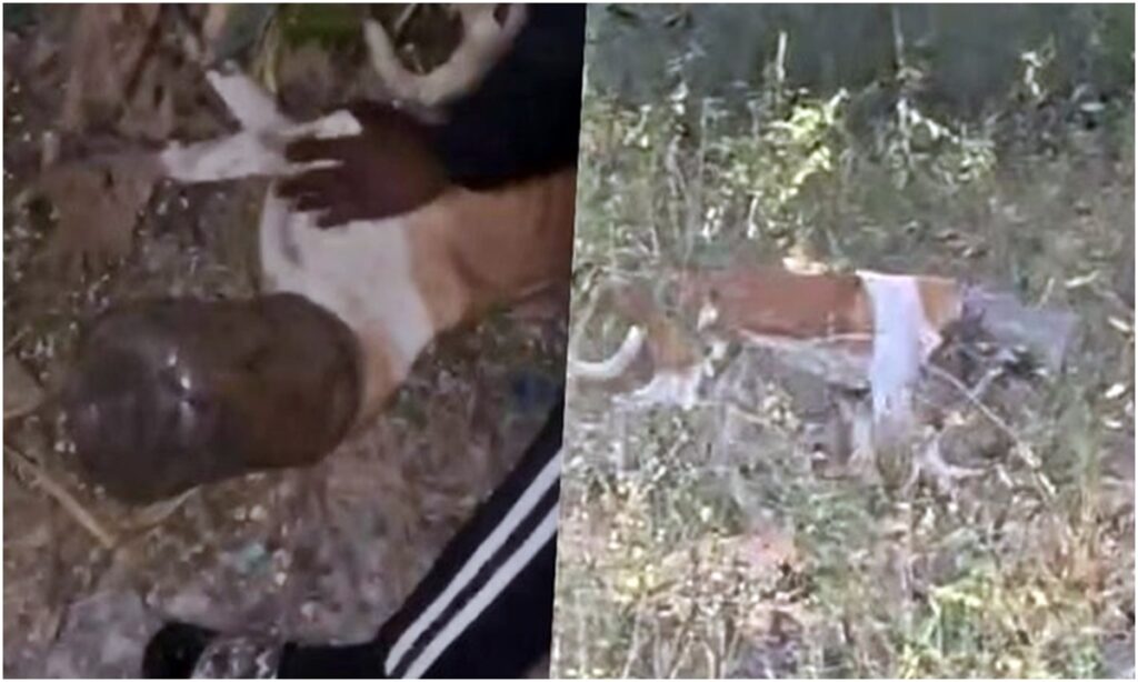 चार दिन तक प्लास्टिक के डिब्बे में फंसा रहा कुत्ते का सिर, बड़ी मुश्किल से निकाला गया, जिसके बाद तेजी से भागा कुत्ता।