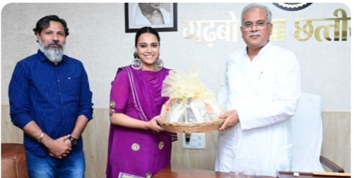 छत्तीसगढ़ में मुख्यमंत्री से बॉलीवुड अभिनेत्री स्वरा भास्कर ने की सौजन्य मुलाकात, स्वरा को मिलेट से बने उत्पाद और कोसा से बनी साड़ी उपहार स्वरुप भेंट किए